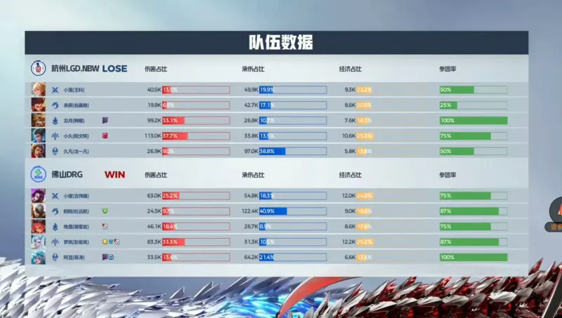 第一场比赛:蓝方杭州LGD.NBW红方佛山DRG