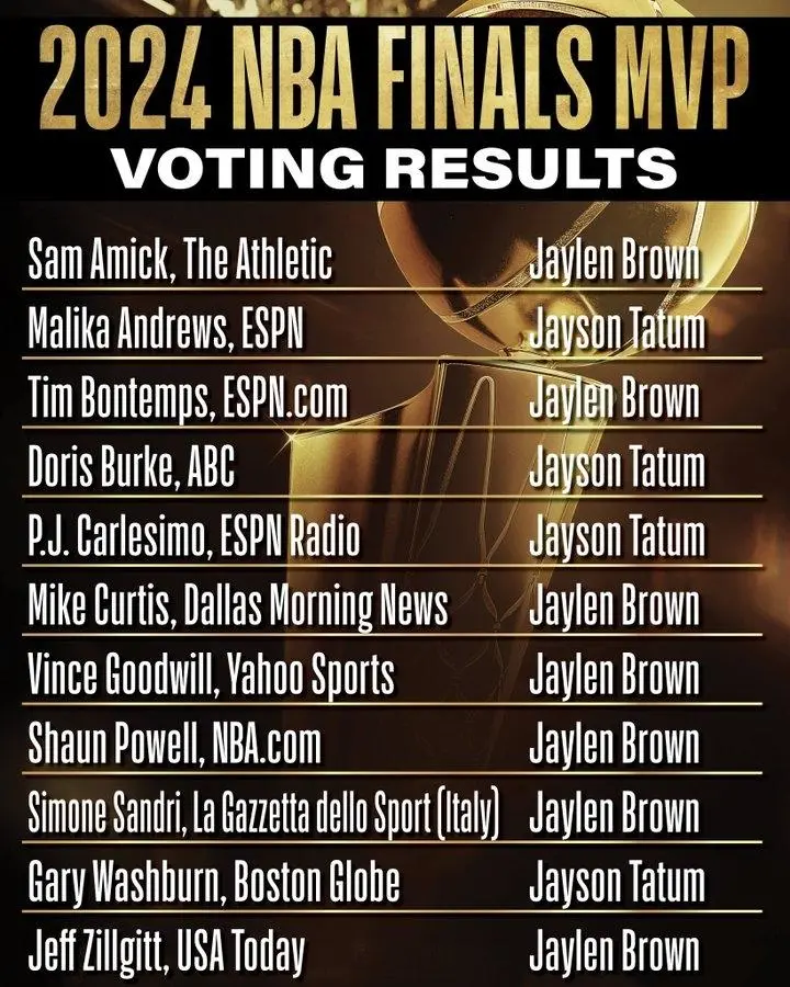 FMVP投票结果:杰伦·布朗获得7票 塔图姆4票